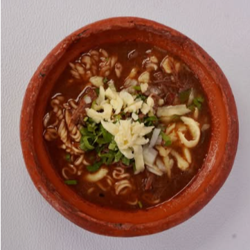 Delicioso ramen servido en caldo de birria con deliciosa carne de birria.