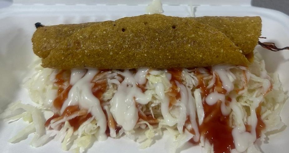 Deliciosa tortilla rellena de carne y acompañado con repollo y salsas, foto ilustrativa, contiene 1 unidad