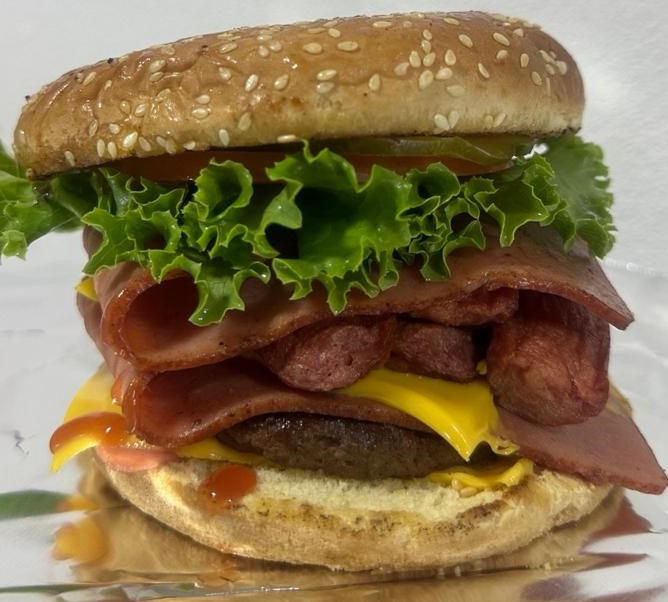 (Pan fresco con una sabrosa salchicha, lechuga o repollo y salsas de la casa)