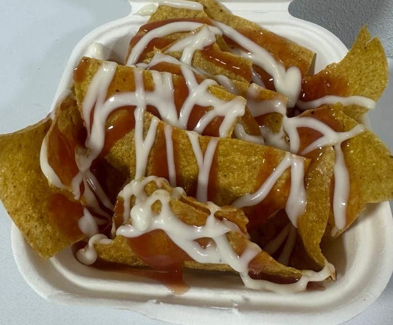 (Deliciosos picos de tortilla de maíz fritos acompañados con una deliciosa salsa de la casa)
