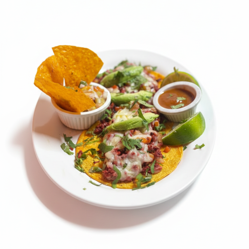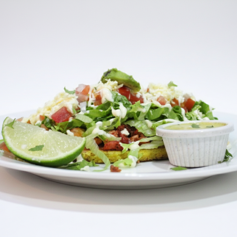 ¡Huarache al gusto! 🌮 Disfruta de una tradicional tortilla de maíz palmeada, rellena de frijolitos y coronada con lechuga fresca, vibrante pico de gallo, cremoso queso blanco, un toque de natilla y tu carne favorita. ¡Una explosión de sabor que te transportará a México!