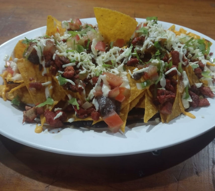 ¡Crunchy, delicioso y abundante! 🤩 Prepara tus sentidos para nuestros Nachos cargados con frijolitos cremosos, la carne de tu elección, una cascada de queso cheddar derretido, un fresco pico de gallo, suave queso blanco y el toque final perfecto de natilla. ¡Una explosión de sabor en cada bocado! 🌮🔥