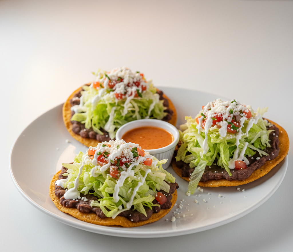¡Descubre la explosión de sabor en cada bocado! 🚀 **Tostadas Delicia de la Casa** Tres crujientes tostadas generosamente rellenas de frijolitos cremosos, lechuga fresca, queso rallado y una suave natilla. ¡Y lo mejor! Acompañadas de tu carnita preferida para una experiencia inolvidable. Perfectas para cualquier antojo. 😋