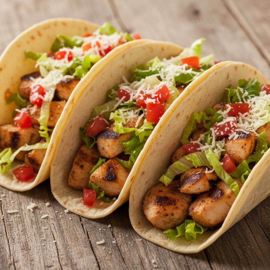 ¡Descubre el sabor auténtico con nuestros 3 Tacos de Pollo a la Plancha! 🌮 Tiernas tiras de pollo sazonadas, cocinadas a la perfección y servidas en tortillas calientes, acompañadas de fresca lechuga, tomate y un toque de queso. ¡Simplemente irresistibles!