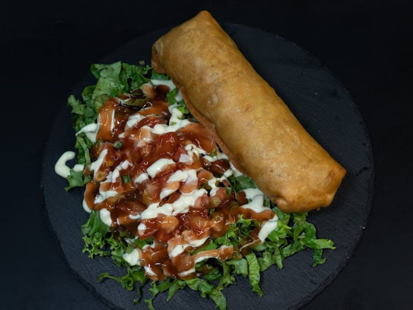 Una deliciosa Tortilla De Harina, con relleno de carne, frijoles y delicioso queso derretido encima una capa deliciosa de lechuga, pico de gallo, salsa Kétchup y nuestra deliciosa Mayonesa casera.