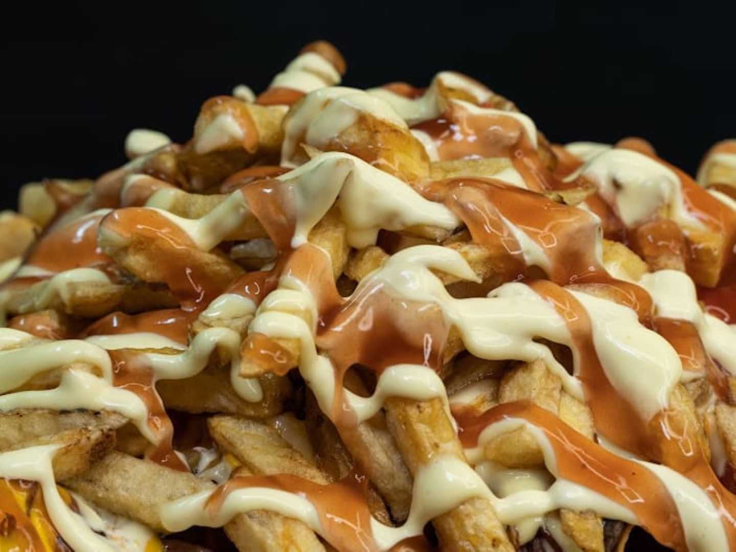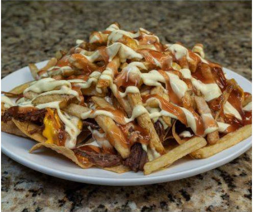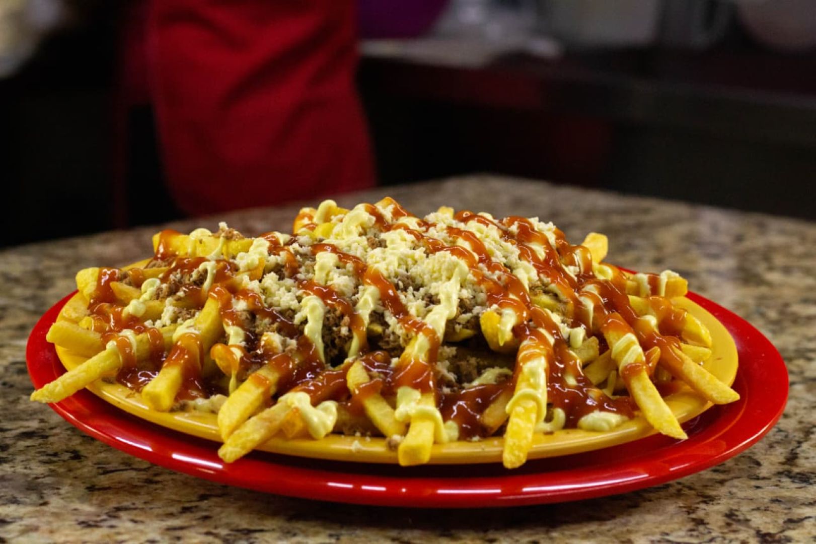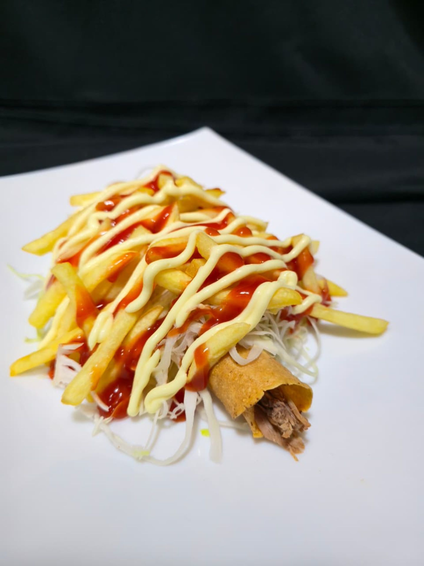 Crujientes papas a la francesa arregladas con deliciosa carne mechada, queso blanco, con salsa de tomate Kétchup y nuestra cremosa mayonesa casera, creando un bocado delicioso y lleno de sabor.