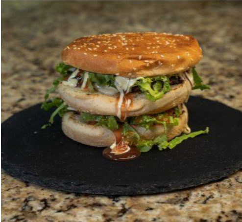 Suave pan de hamburguesa que envuelve una torta de carne casera jugosa, acompañada de fresca lechuga, con salsa de tomate y cremosa mayonesa casera, creando un bocado delicioso y lleno de sabor. Viene acompañada de doraditas y papas a la francesa.