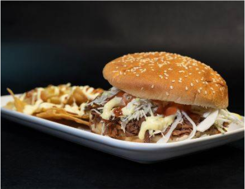 Suave pan de hamburguesa relleno de carne mechada jugosa, queso blanco, repollo fresco, deliciosa salsa de tomate y nuestra cremosa mayonesa casera, acompañado de crujientes doraditas y papas a la francesa doradas, creando un combo ORIGINAL delicioso, lleno de sabor y texturas irresistibles.