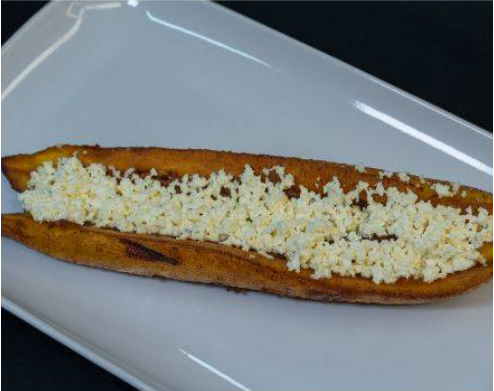 Nuestro delicioso plátano maduro cubierto con queso blanco, creando un acompañamiento o snack delicioso, cremoso y lleno de sabor que combina la dulzura natural del plátano con la textura salada del queso.