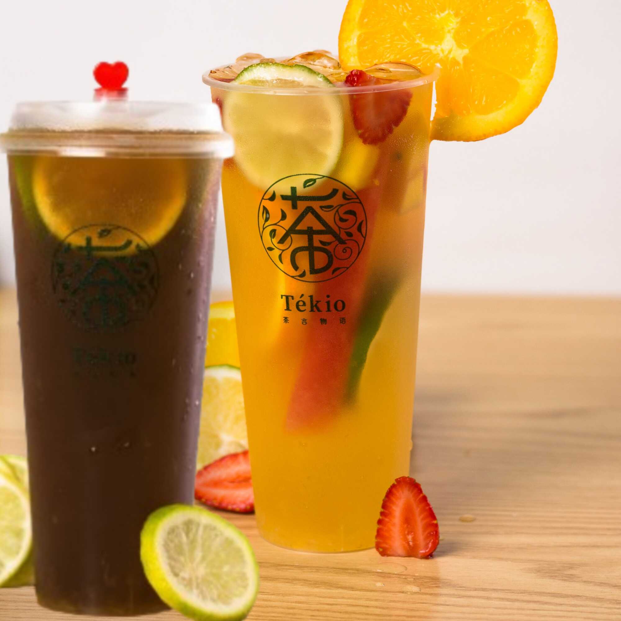 bebida de té verde con escencia de frutas y gran variedad de frutas frescas