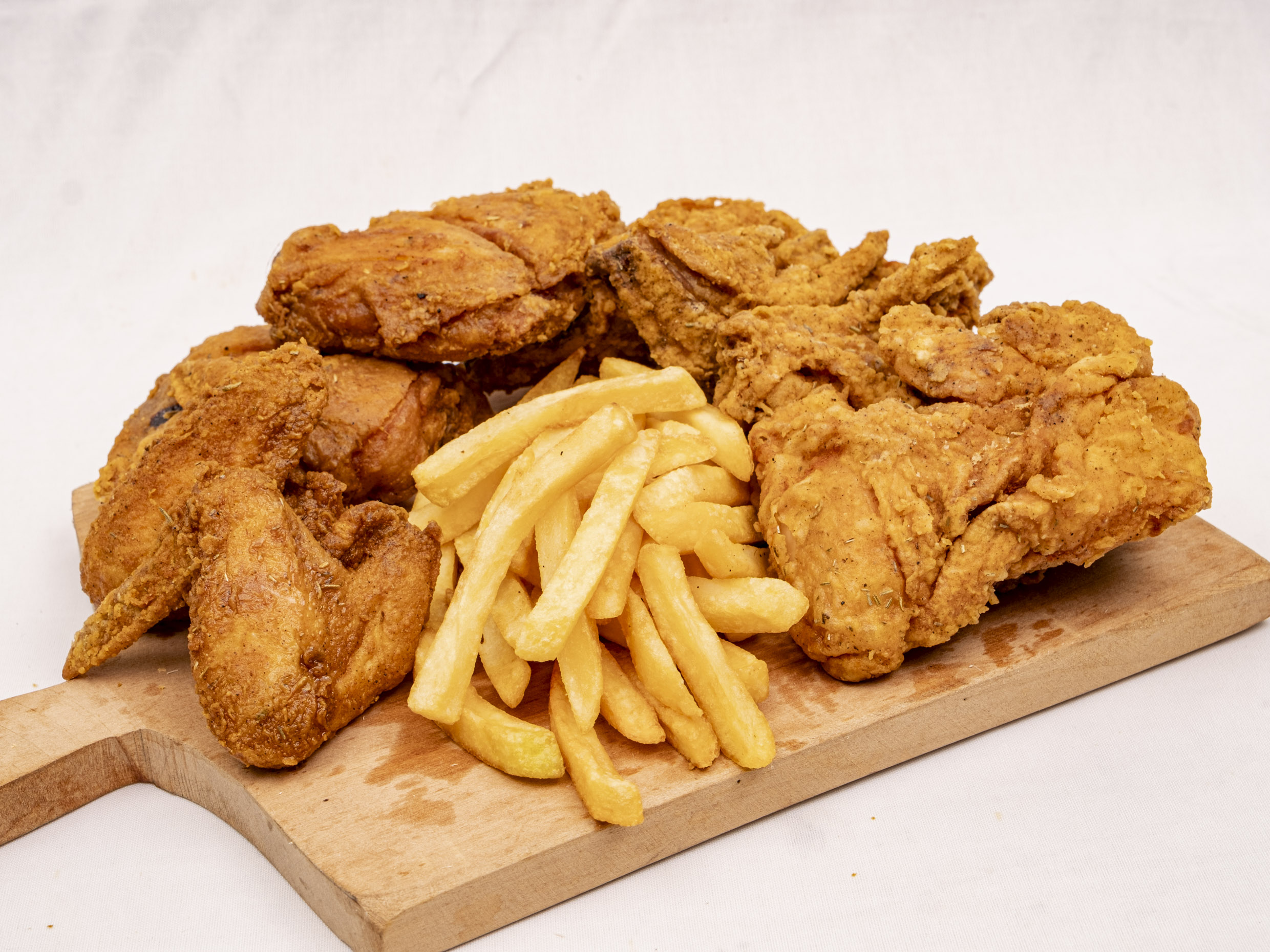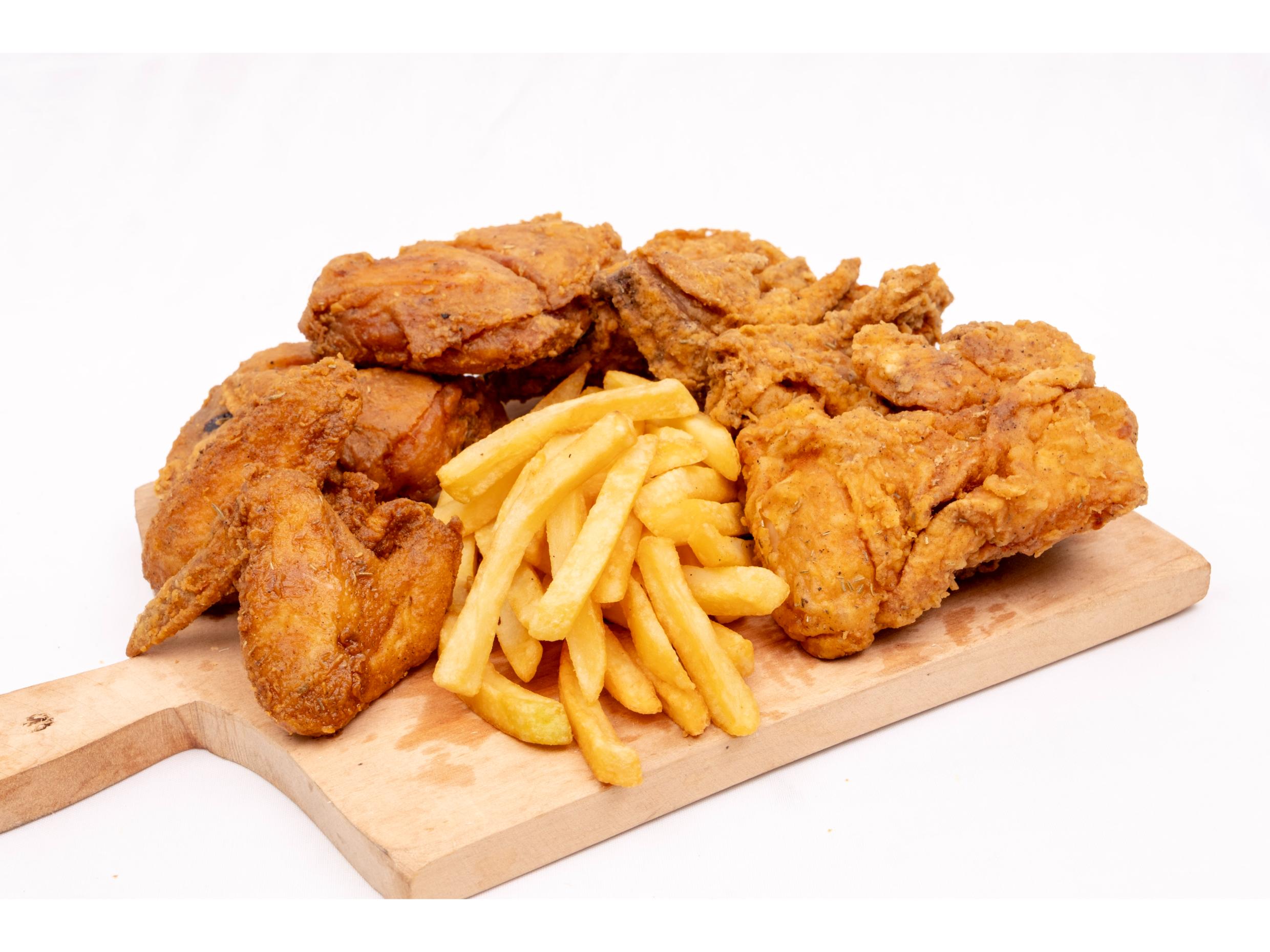 4 pechugas + 2 alas + 3 papas fritas