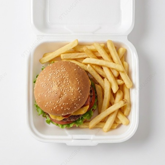 3 Hamburguesas, papas fritas , 2 hot dogs, Palitos de queso