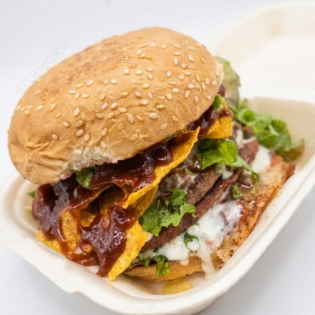 Hamburguesa clásica bañada en la salsa de tu elección, barbacoa (bbk) o búfalo picante.