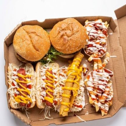 3 Hamburguesas, 4 palitos de queso, 2 hot dogs, 1 papas.