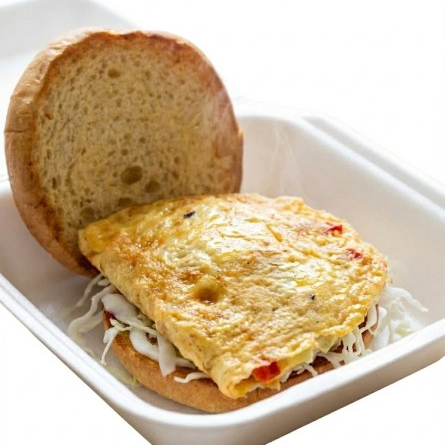 Hamburguesa conechuga y torta de huevo arreglado .