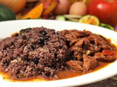 Arroz, frijoles negros enteros, ensalada de la casa (lechuga y tomate) y carne de acompañamiento, incluye una bebida.
