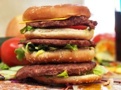 Hamburguesa de res de tres pisos, 3 tortas y 3 panes.