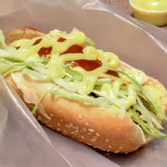 Dos perros calientes con salchicha, repollo fresco y una combinación irresistible de salsa de tomate y mayonesa especial de Tico Burguesas. ¡Sencillos, pero llenos de sabor!