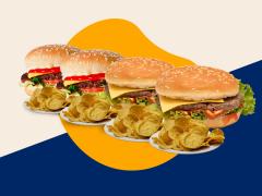 Dos deliciosas hamburguesas de carne acompañadas de jamón, queso amarillo y todos los ingredientes frescos que te encantan. ¡Un clásico mejorado!