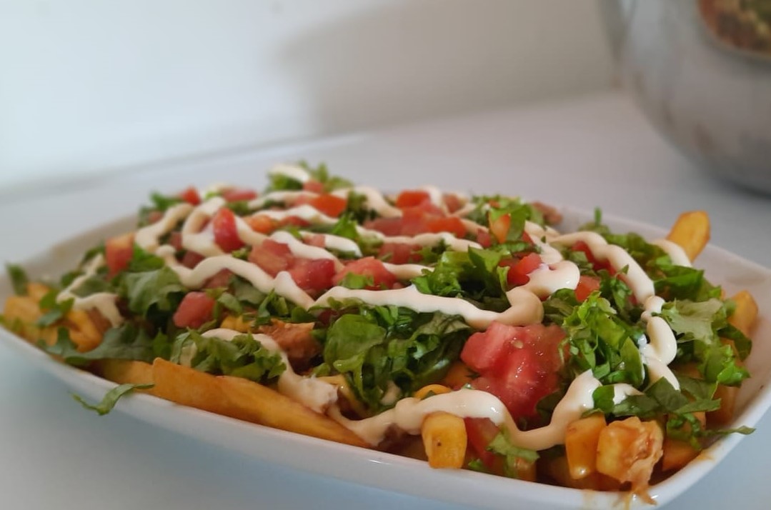 Lechuga, tomate, hongos, queso americano y amarillo, cebolla caramelizada y salsa blanca.