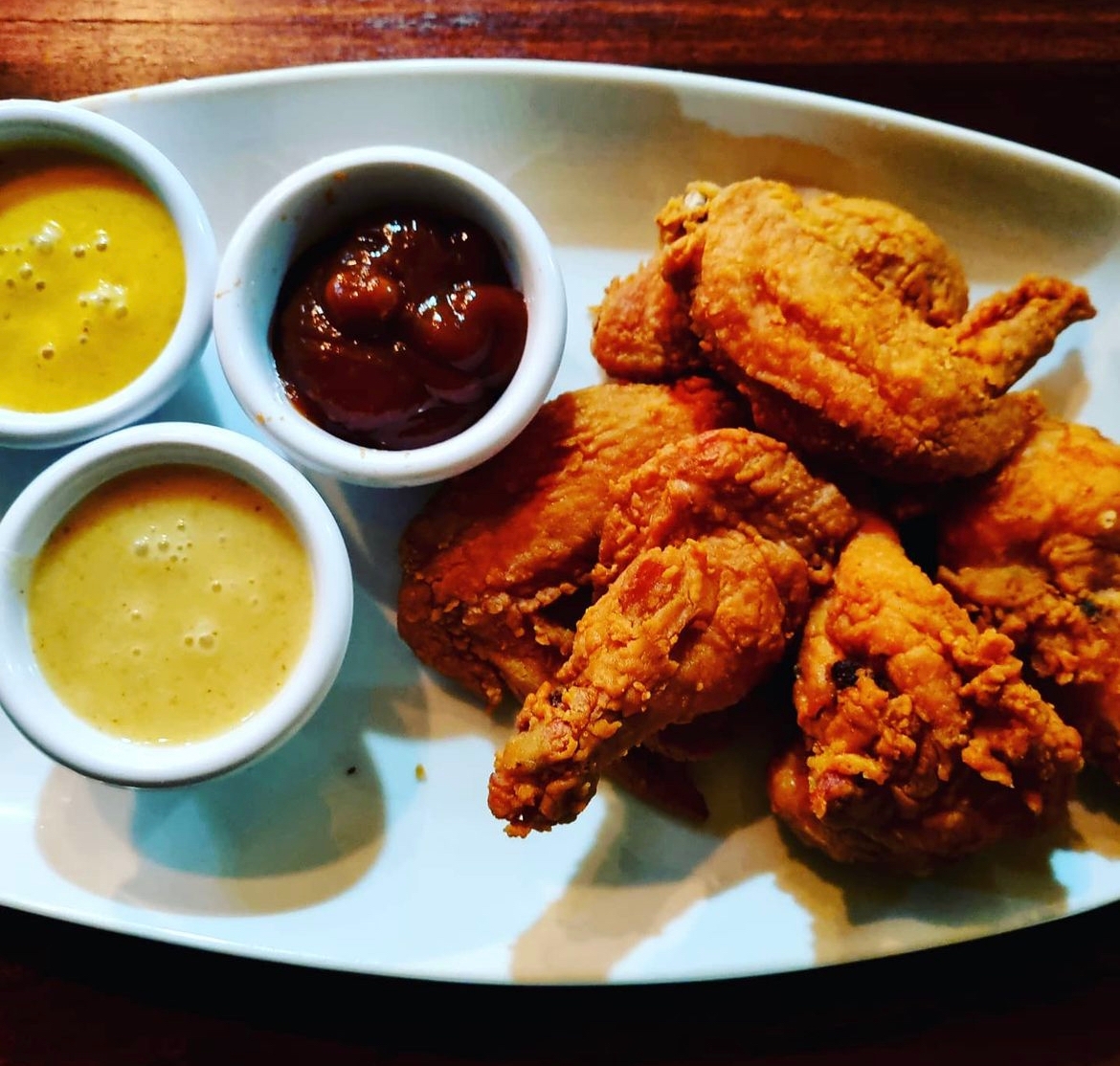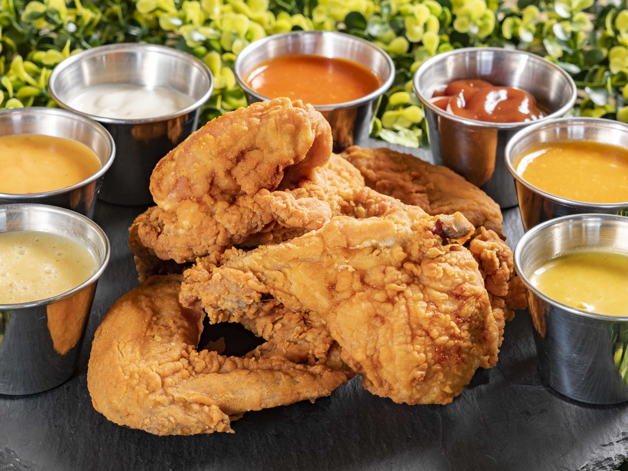 escoger 1 salsa entre, BBQ, mostaza miel, caribeña, maracuya, bufalo, chipotle y bufalo con ranch