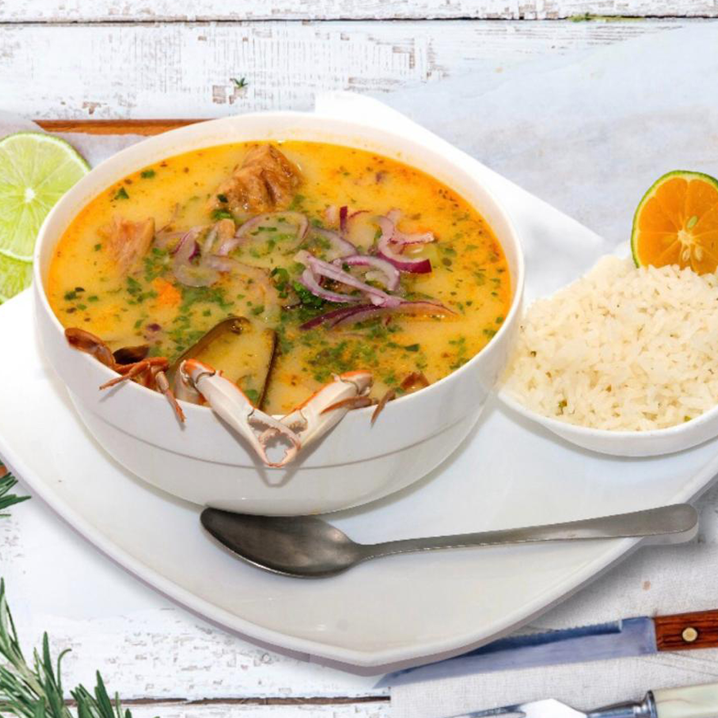 Sopa de Mariscos + Arroz Blanco