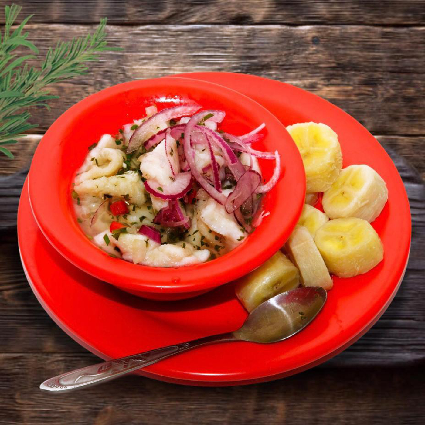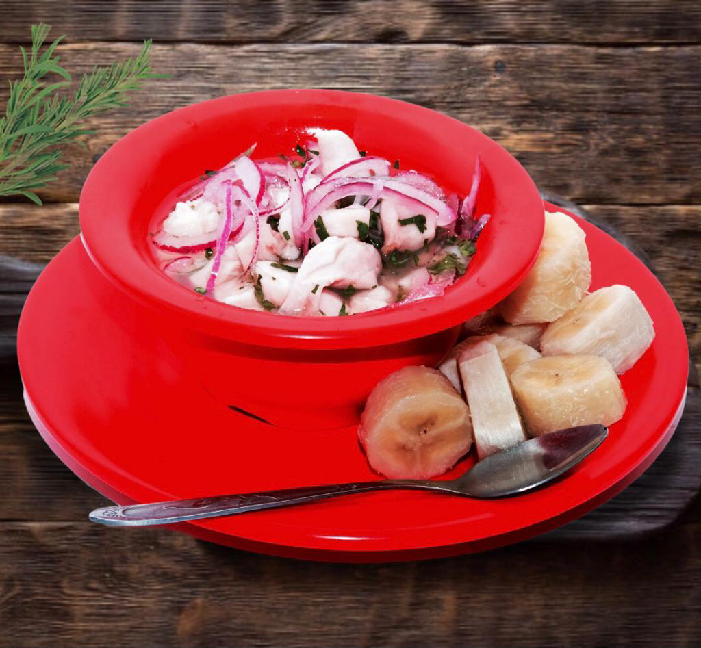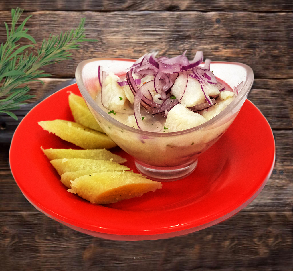 Ceviche a elegir corvina o marlin y un snack.