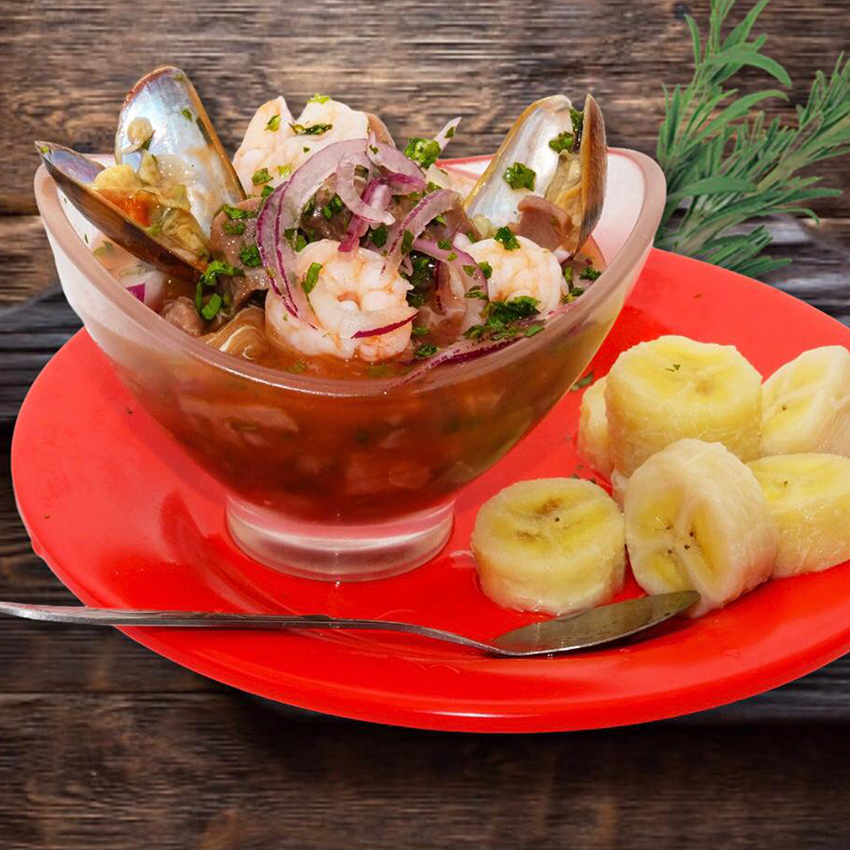 16oz Sopa de Mariscos acompañada de 8oz de arroz blanco