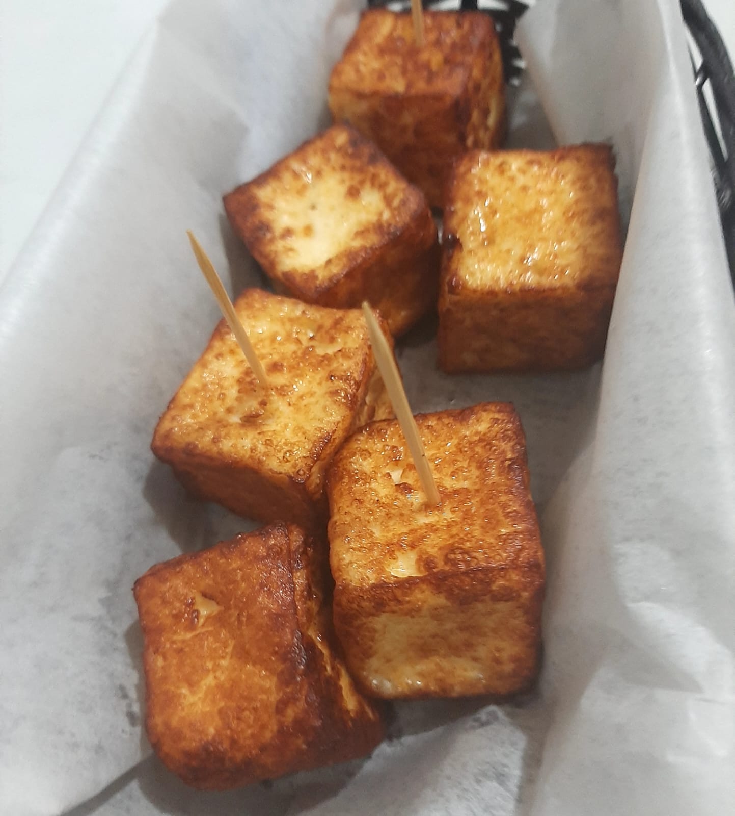 Tempurizado y relleno de queso crema, cangrejo y plátano. Relleno de surimi, plátano maduro y queso crema, cubierto en pasta tempura y salsa anguila.