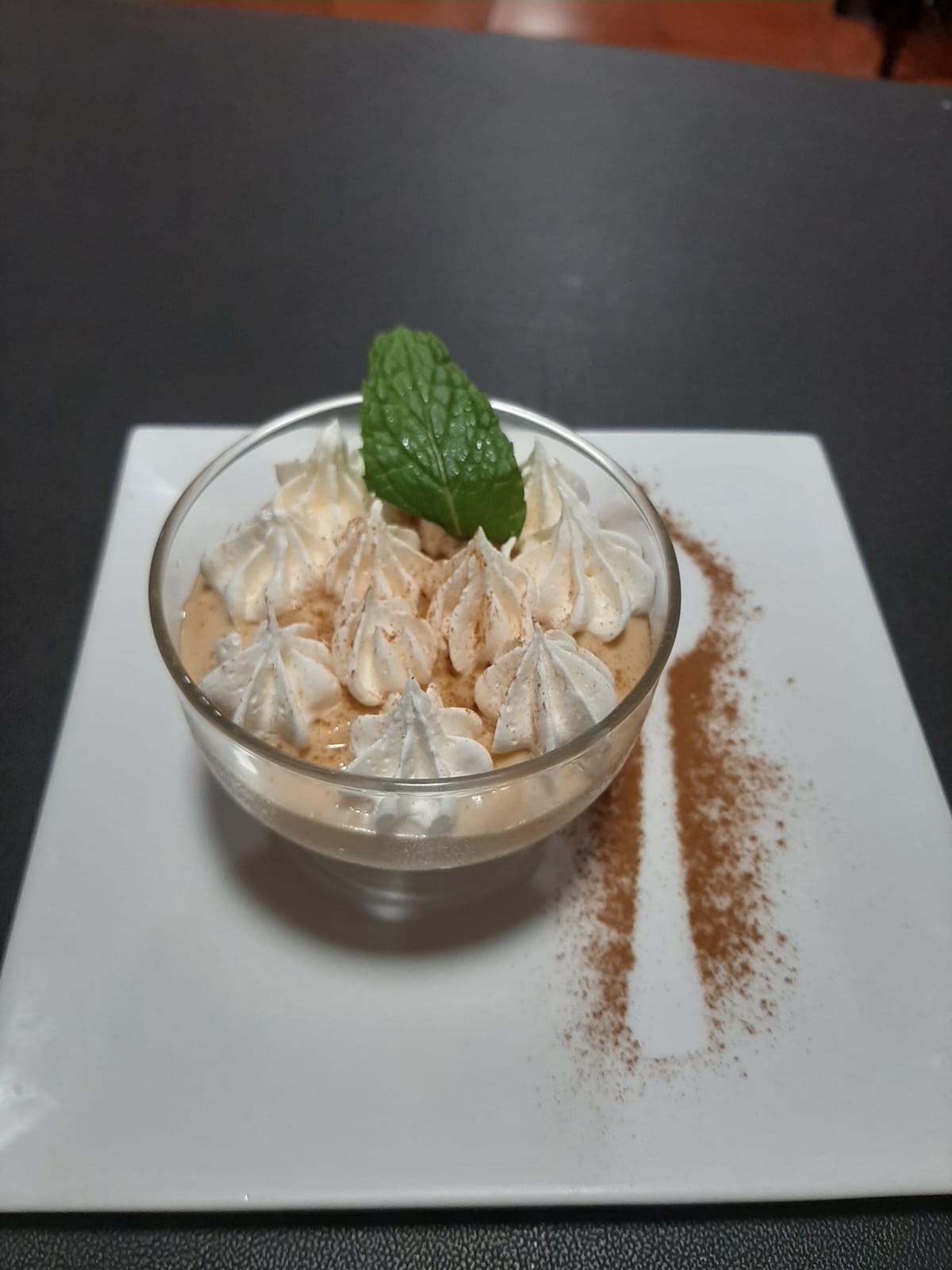 Postre peruano leche condensada leche evaporada chantilly y canela en polvo.