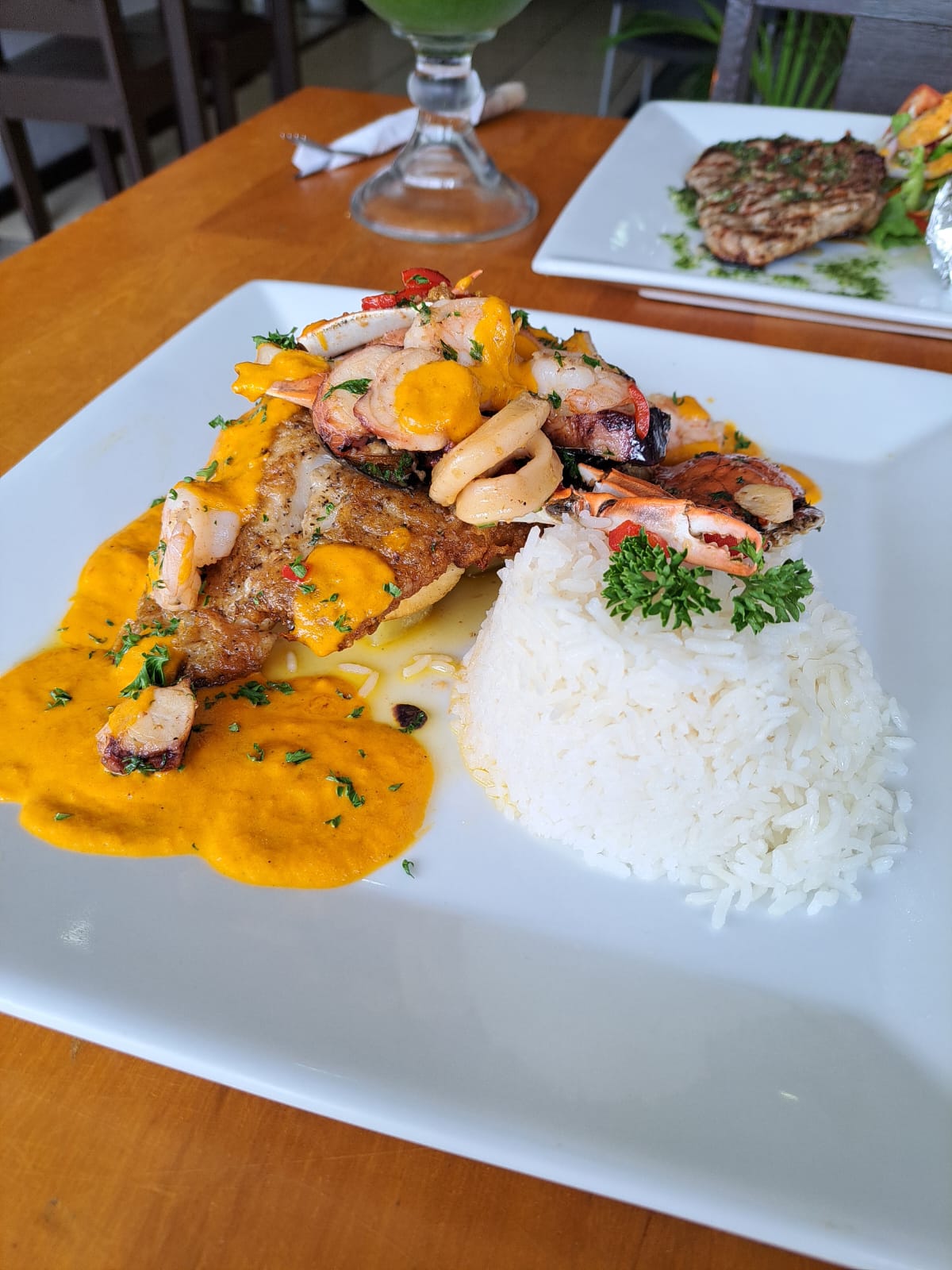 Filet de Pescado con Salsa a lo Macho con Mariscos