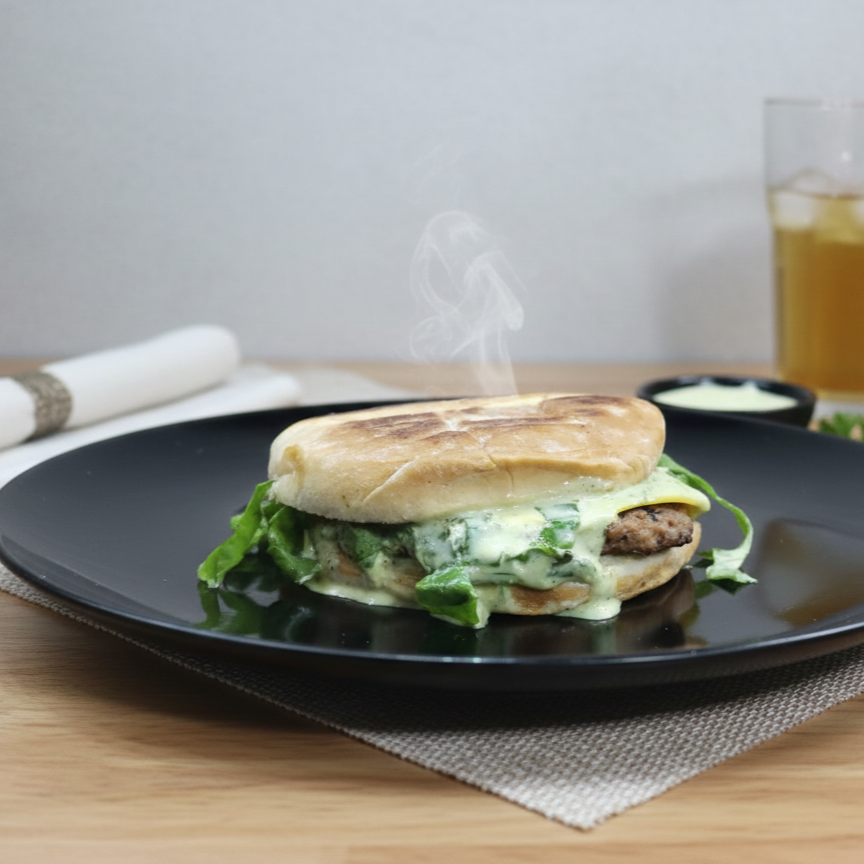 100% Pechuga sin hueso, con salsa de tomate, mayonesa y doraditas.