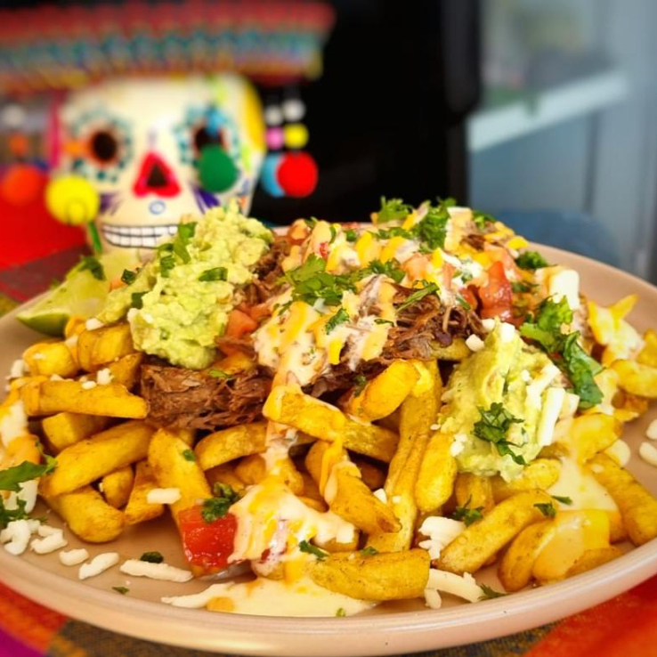 Papas fritas, mozzarella, pico de gallo, aguacate, queso molido, aderezos y proteína a elegir.