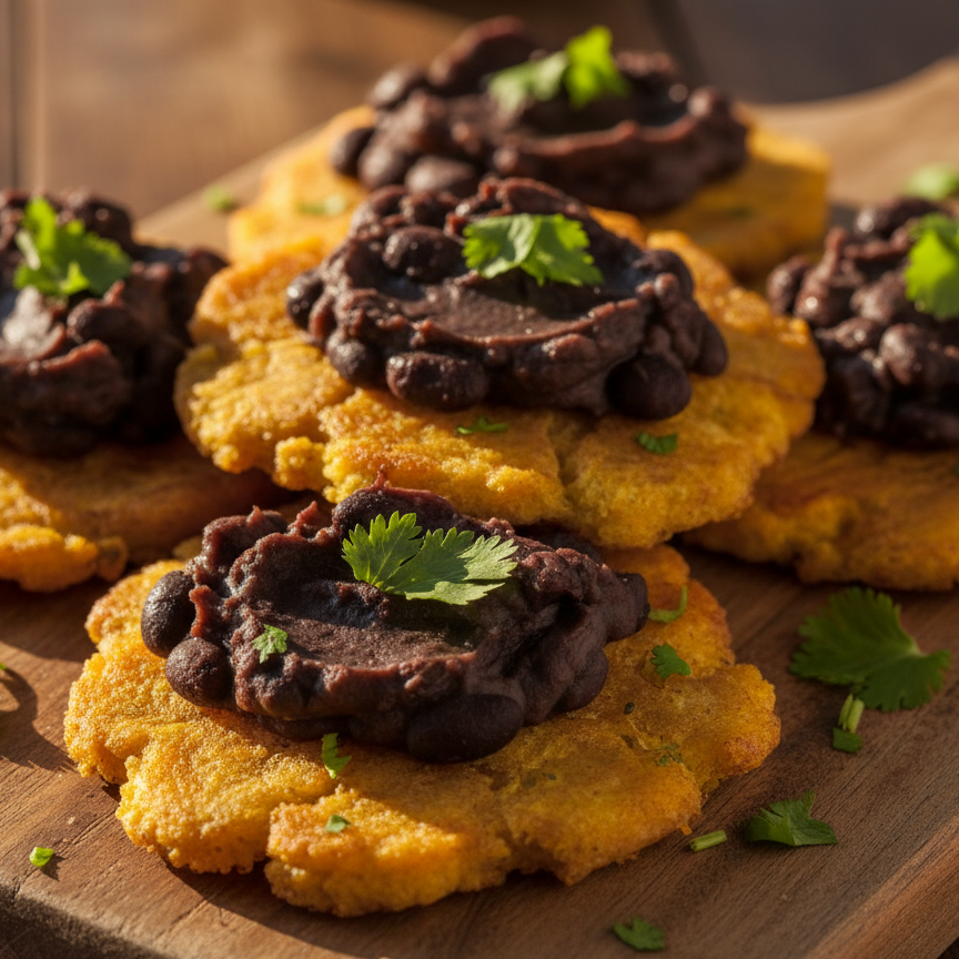 ¡Patacones con Frijolitos Molidos! 😋 Crujientes patacones, dorados a la perfección, coronados con la cremosidad inconfundible de nuestros frijolitos molidos. Un bocado auténtico que te transporta a la cocina de la abuela. ¡Ideal para picar o como acompañamiento!