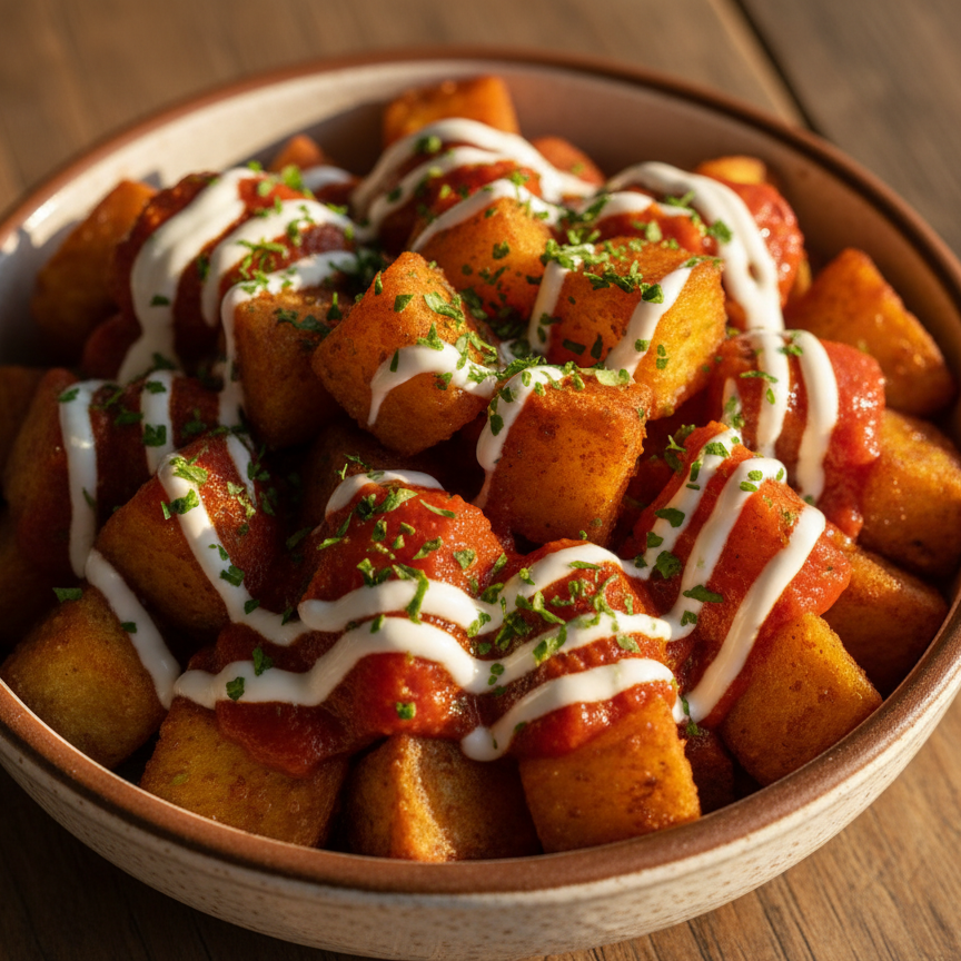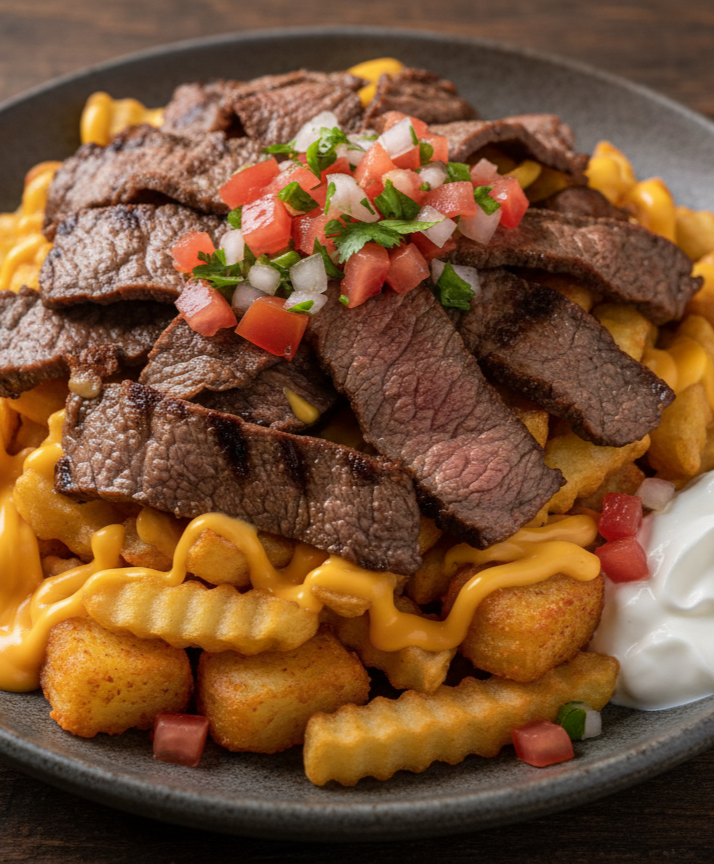 Papas Carnívoras: ¡La explosión de sabor que esperabas! 💥 Crujientes papas bravas y fritas, bañadas en cremosa salsa cheddar, coronadas con jugosas tiras de carne importada, fresco pico de gallo y un toque de natilla para el contraste perfecto. ¡Irresistibles!