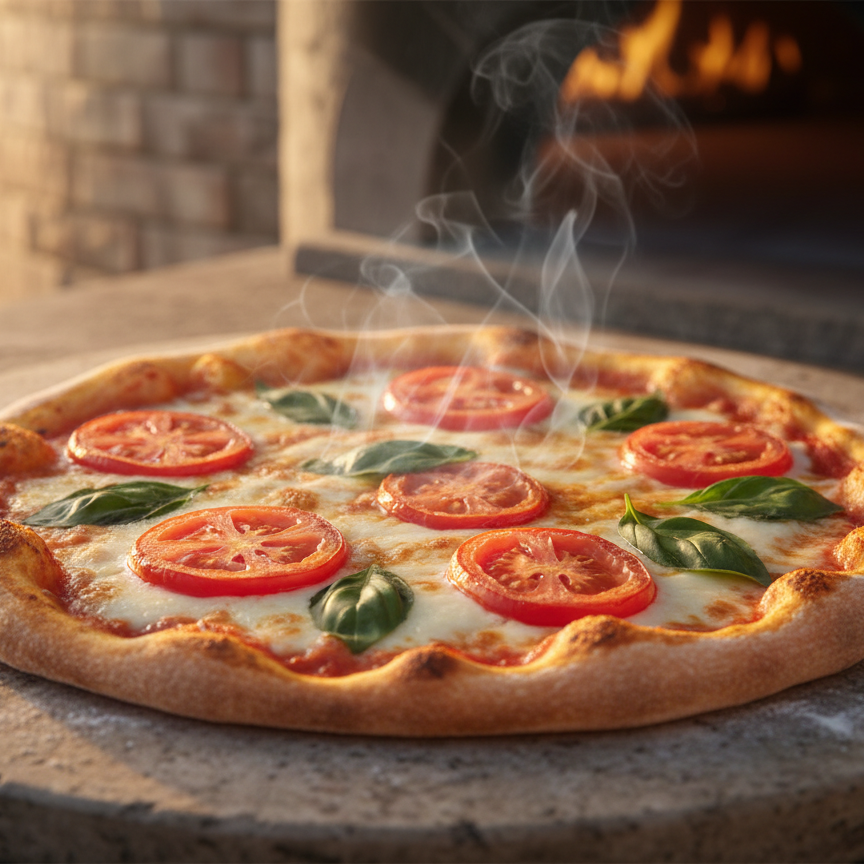 ¡Un clásico irresistible! 🍕 Nuestra masa artesanal cubierta con mozzarella fundida, rodajas de tomate fresco y un toque aromático de albahaca. 🌿🍅 Simple, fresca y deliciosa.
