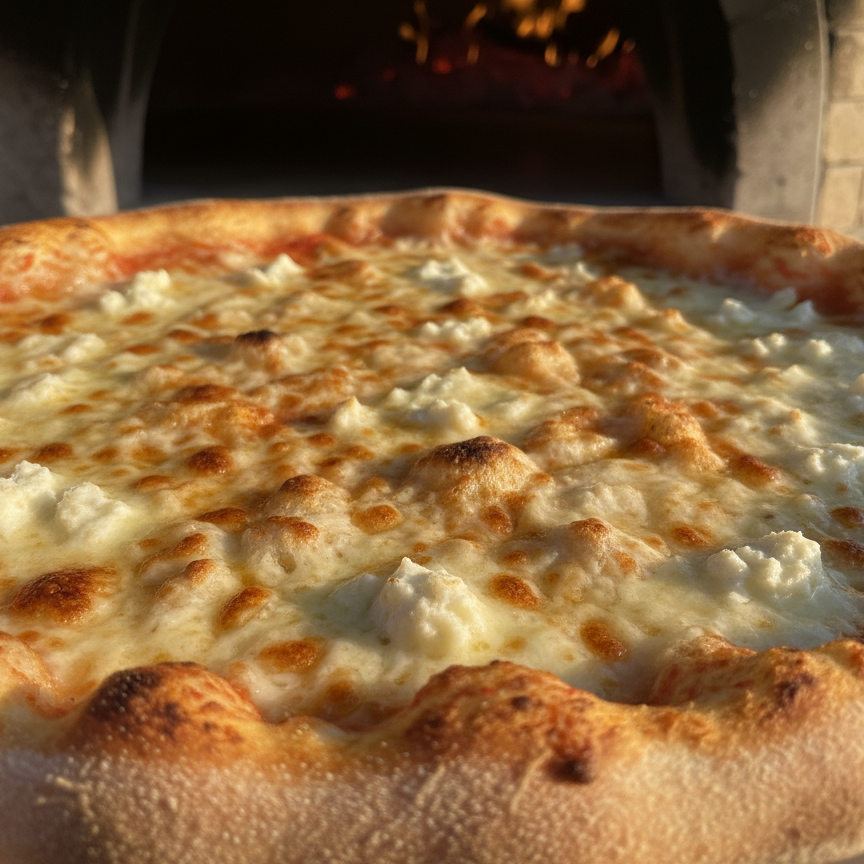 ¡La tentación quesera definitiva! 🧀 Una mezcla maestra de Mozzarella, Pecorino, Parmesano y Provolone fundidos sobre nuestra masa artesanal crujiente. ✨