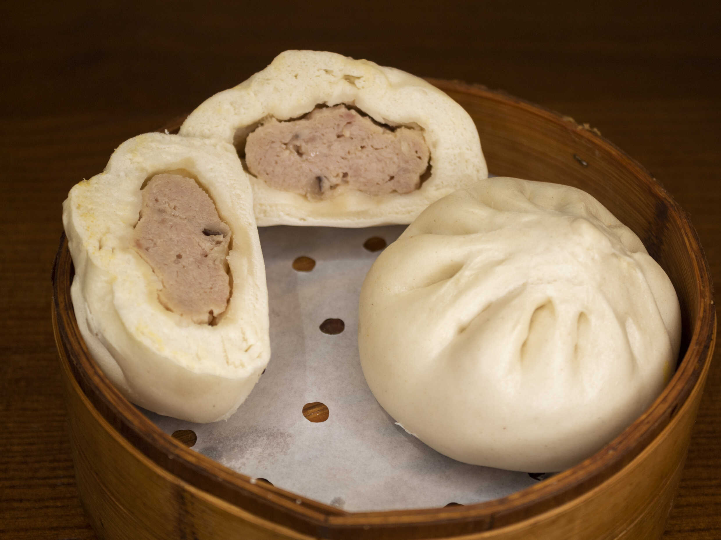 2 unidades de pan elaborado al vapor rellenos de trocitos de lechon una salsa especial.