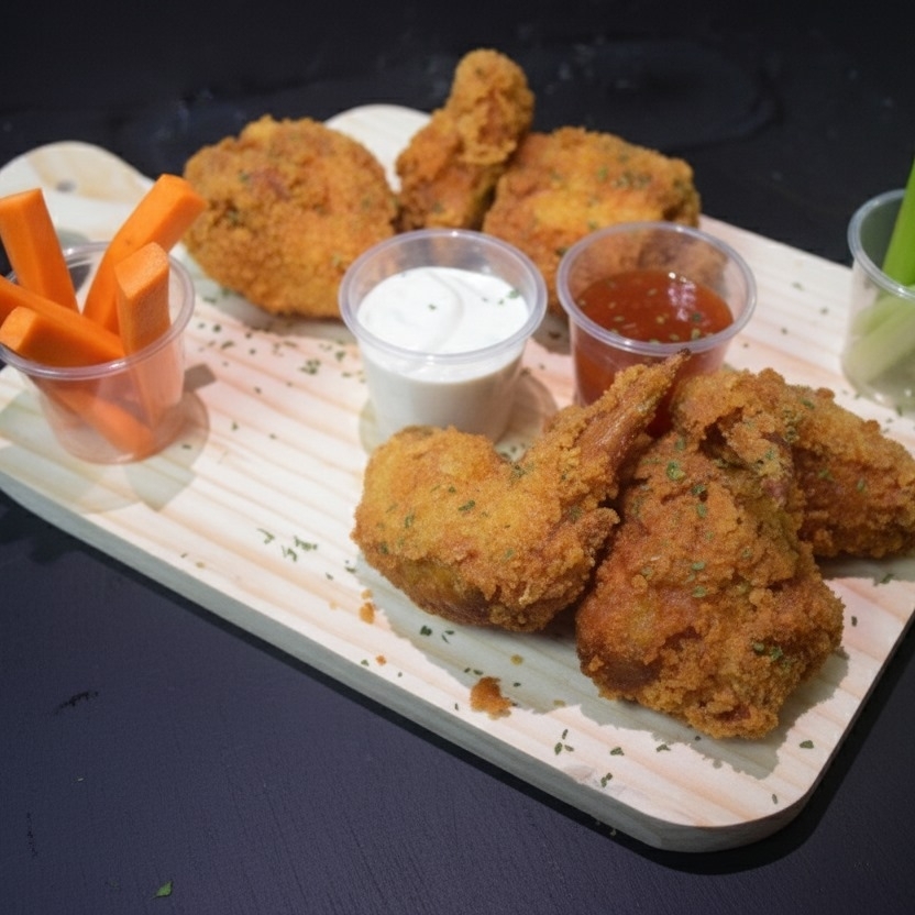 8 Alitas acompañadas con papas fritas y salsa a elegir.