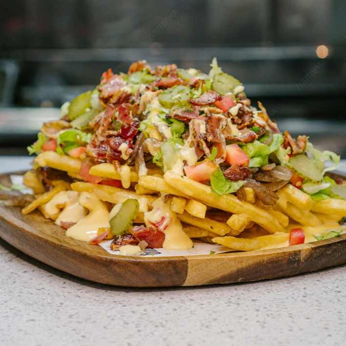 Disfruta de una combinación de carne, queso, cebolla, chile morrón, pina, todo salteado en un pan telera mexicano con mayonesa de chipotle y acompañado de papas fritas.