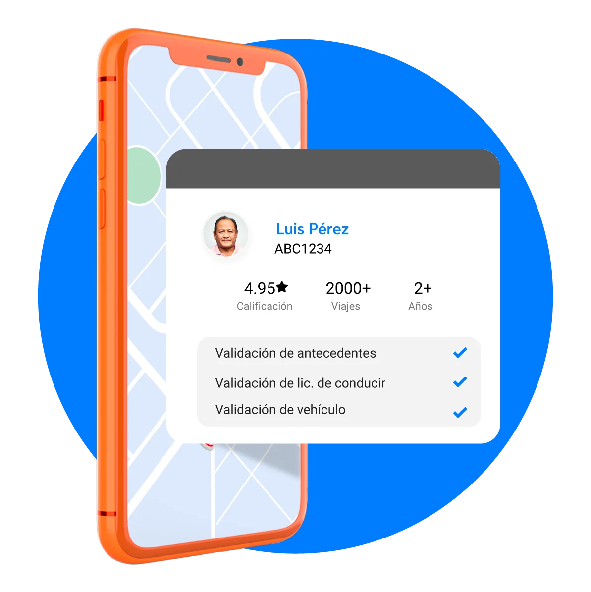 Antes de iniciar un viaje, siempre podrás consultar el modelo y placas del auto, así como la foto y el nombre del socio conductor.
