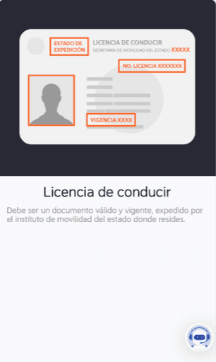 Licencia de conducir: Debes subir una foto clara de tu documento original sin cortar las esquinas del mismo. La revisión de los documentos puede tomar de 24 a 48 horas.