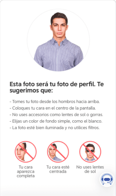 Foto de perfil: La foto debe ser tomada por ti mismo, sobre un fondo plano, de hombros hacia arriba y sin accesorios.