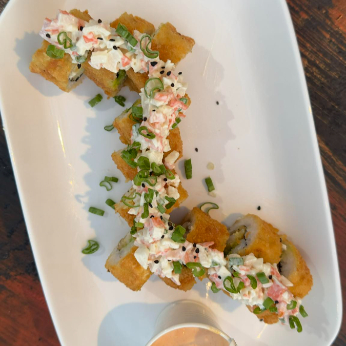 rollo de aguacate y cangrejo rollo maki furai de camaron y ensaldada de surimi empanizado frito y rollo empanizado con relleno cangrejo por fuera ensalda tampico y surimi capeado