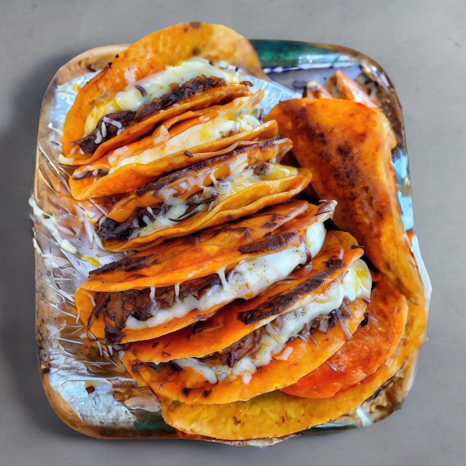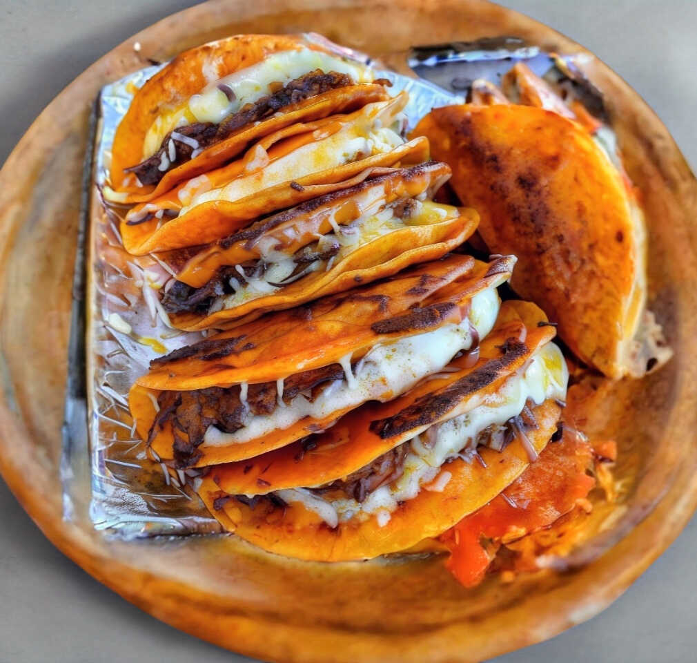 Tortilla de molino, Birria y queso chihuahua.