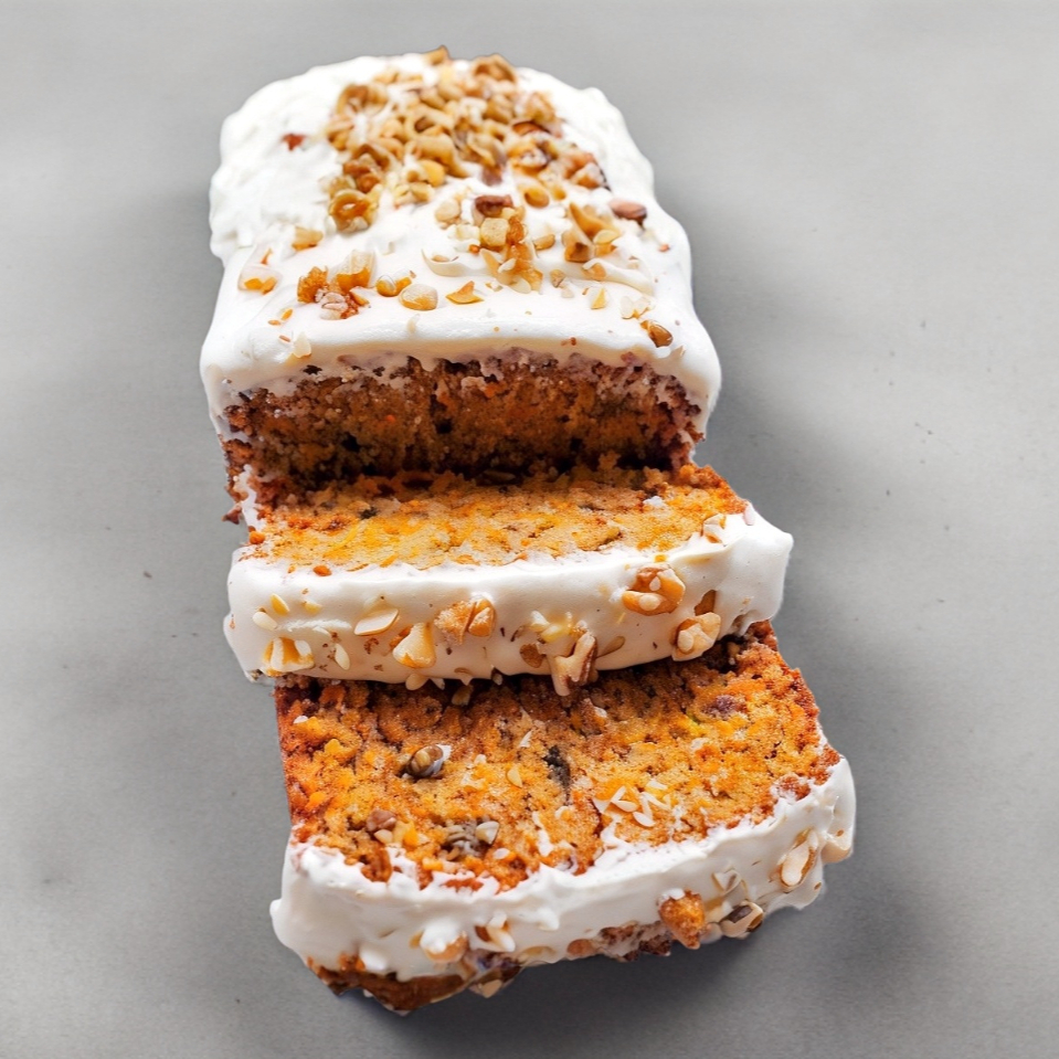 Panque de Zanahoria, betún de queso y Nuez, (rebanada)