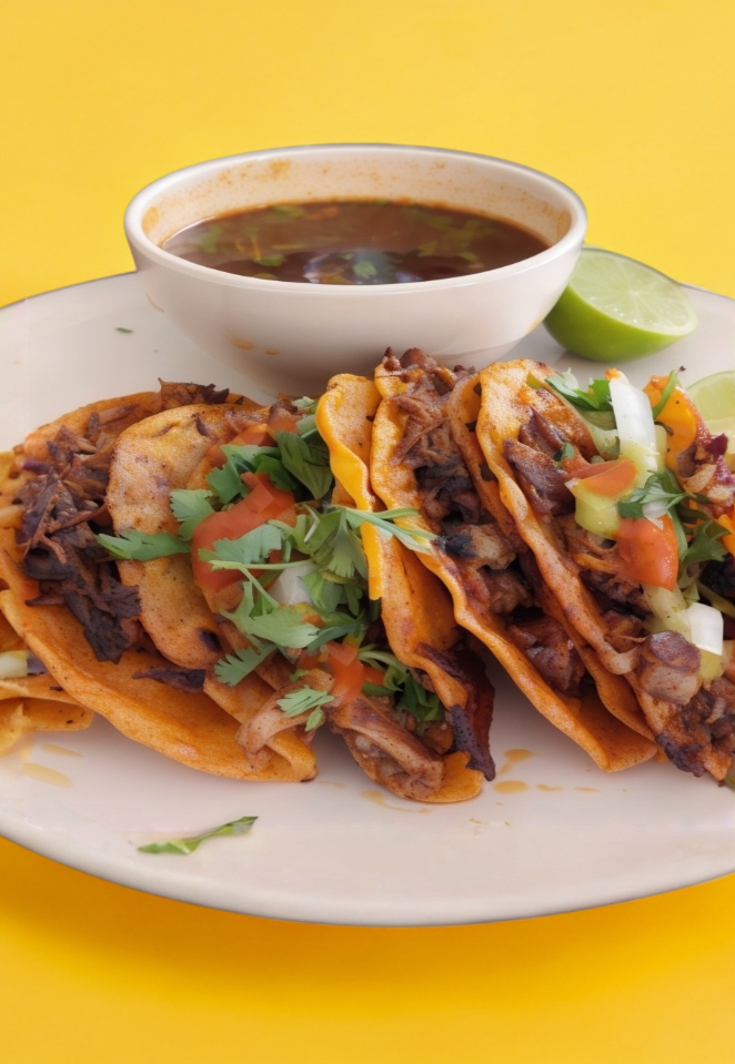 Taquitos de tortilla de maíz, doraditos en la plancha, acompañado de delicioso consomé. Ord. 5pza.