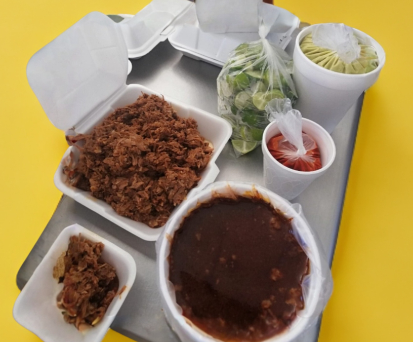 INCLUYE salsa verde, cilantro, cebolla y un consomé individual.