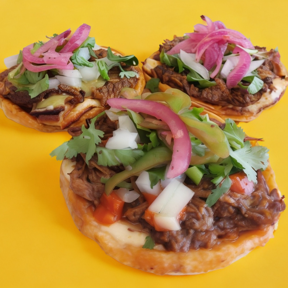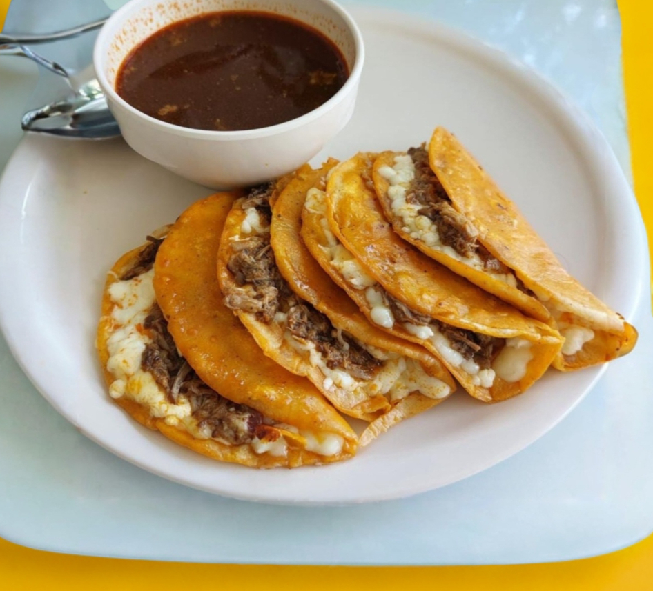 Crujiente sopecito con jugosa porción de birria, gratinado con queso. Ord. 3pza.
