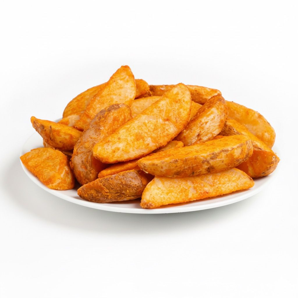 Orden individual de papas gajo, gruesas, doradas y sazonadas. crujientes por fuera y suaves por dentro, con un sabor especiado que las hace perfectas como acompañamiento o para disfrutar solas. ideal para complementar